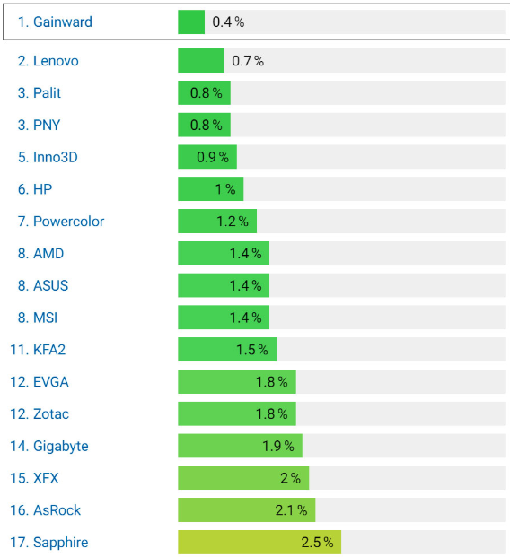 کمترین نرخ خرابی کارت گرافیک متعلق به کدام برندهاست؟